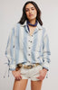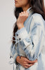 a fun button down top with wrist ties and collar and front pockets. pair with denim, or shorts