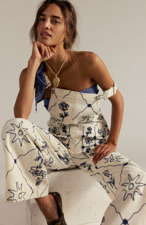 free people rising sun overall in solar ecru