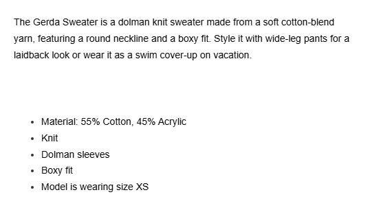 a soft cotton blend dolman sweater is a must this spring/ summer. pairs nicely with linen, denim and cotton